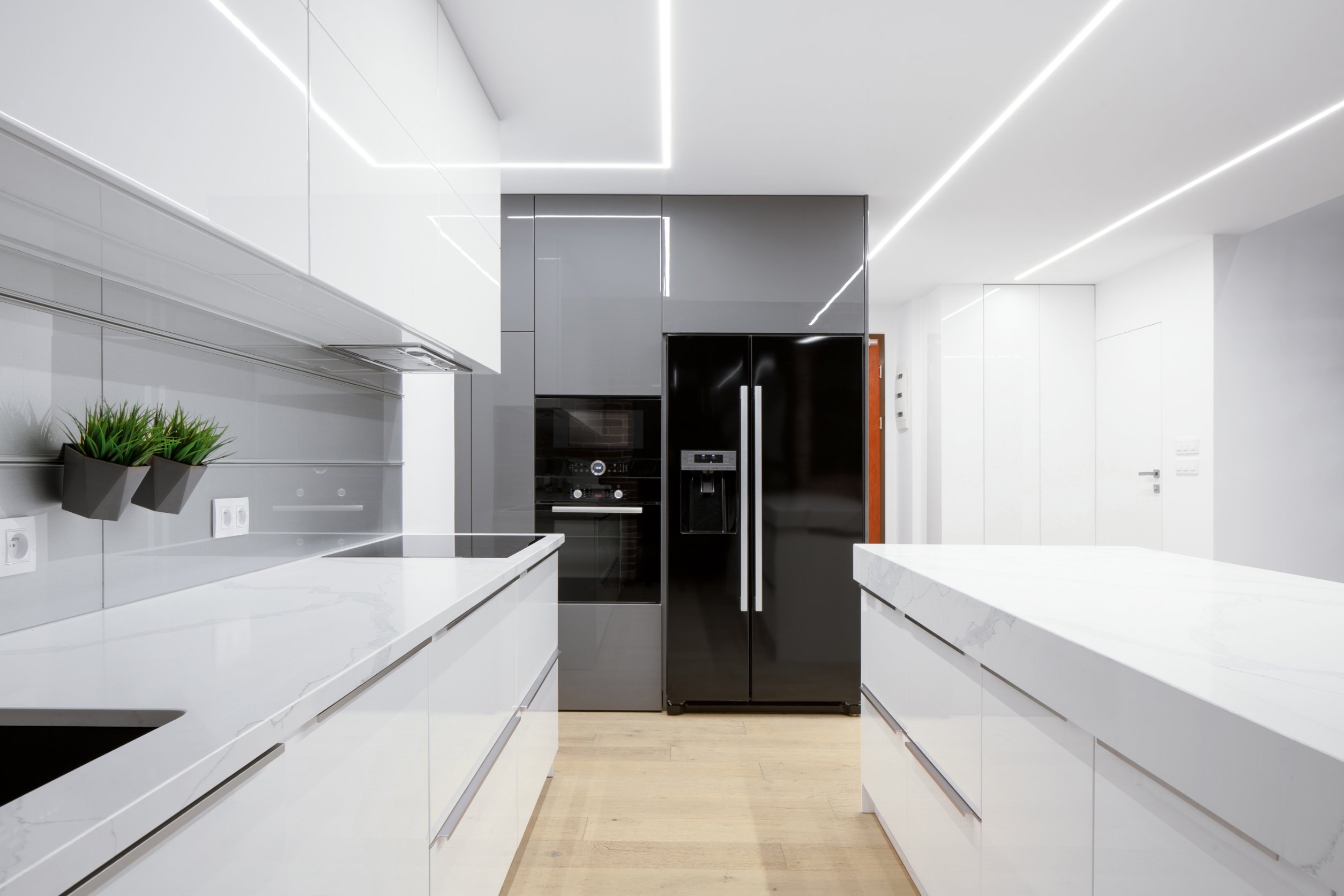 Wir vermessen den Raum exakt. Fertigen die Spanndecken auf Maß. Bereiten den Raum vor. Erhitzen ihn auf Arbeitstemperatur. Hängen die Spanndecke mit den Randverstärkungen ein. Verspannen die Folie Schritt für Schritt. Lassen sie auskühlen. Die Spanndecke schmiegt sich an jede Kurve, jeden Winkel, in jede Ecke. Von den Spannleisten ist nichts mehr zu sehen. Darunter machen wir es nicht.
